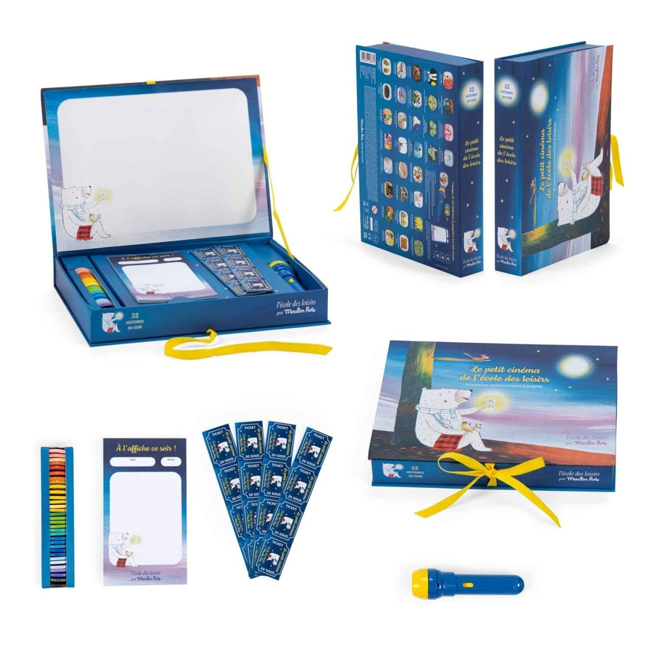 Joc nostalgic Retro cinema - Scoala de vara Adu magia cinematografului în spațiul tău. Setul conține o lanternă proiector, 32 de discuri ilustrate, un bloc de programe și bilete de cinema, pentru a împărtăși aventurile cu prietenii și familia. Fiecare disc spune o poveste emblematică din cărțile École des Loisirs , proiectând imaginile pe perete sau pe suprafața unei cărți. Micii spectatori se vor bucura de experiența interactivă a poveștilor, combinând lectura cu jocul vizual și socializarea. Lanterna funcționează cu baterii (3 buc incluse în set). Vârsta recomandată: + 3 ani. Confecționat din materiale non-toxice, cu vopsele non-toxice, conform reglementărilor EN71&ASTM. AVERTISMENT: Contraindicat copiilor sub 3 ani, conține piese mici, pericol de sufocare. A se utiliza sub directa supraveghere a unui adult. Îndepărtați ambalajul înainte de a oferi jucăria copiilor. Producător: Moulin Roty , Franța