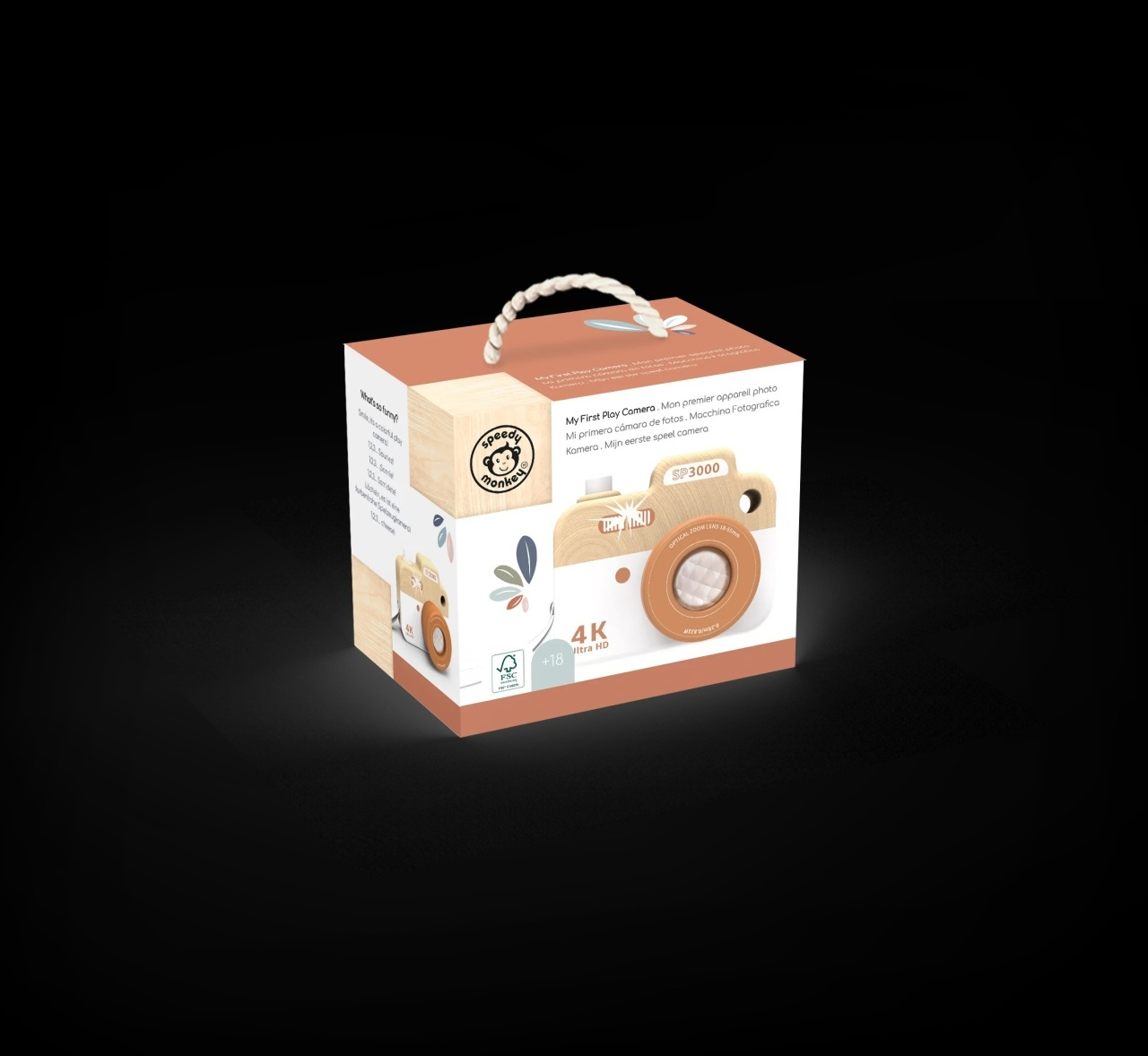 Cameră foto din lemn, Speedy Monkey Camera foto din lemn, cu design adaptat vârstei și un kaleidoscop integrat, încurajează jocul imaginativ și dezvoltă abilitățile de observare ale celor mici. Pentru copiii de +3 ani, camera foto le oferă șansa de a „captura” momente din joacă și de a-și crea propriile povești, stimulând interesul pentru artă și fotografie. Caracteristici: Cameră foto colorată, cu dimensiuni potrivite pentru mâinile copiilor Kaleidoscop integrat pentru explorare vizuală Stimulează imaginația, creativitatea și spiritul de observație. Recomandată pentru: Copii peste 3 ani Joacă educativă acasă, la grădiniță sau în vacanță Cadou creativ, eco-friendly și rezistent Dimensiuni: 11 x 7.5 x 9.5 cm 🌱 Realizat din lemn certificat FSC®, vopsele non-toxice pe bază de apă, sigure pentru copii. AVERTISMENT: Contraindicat copiilor sub 3 ani. Se recomandă supravegherea copilului în timpul jocului. Producător: Speedy Monkey