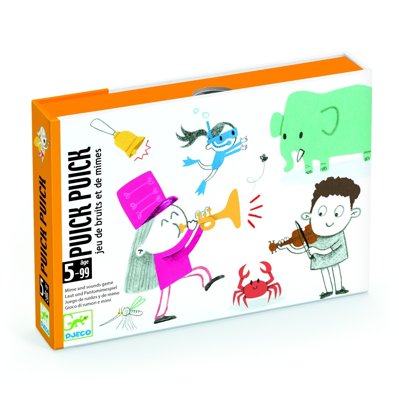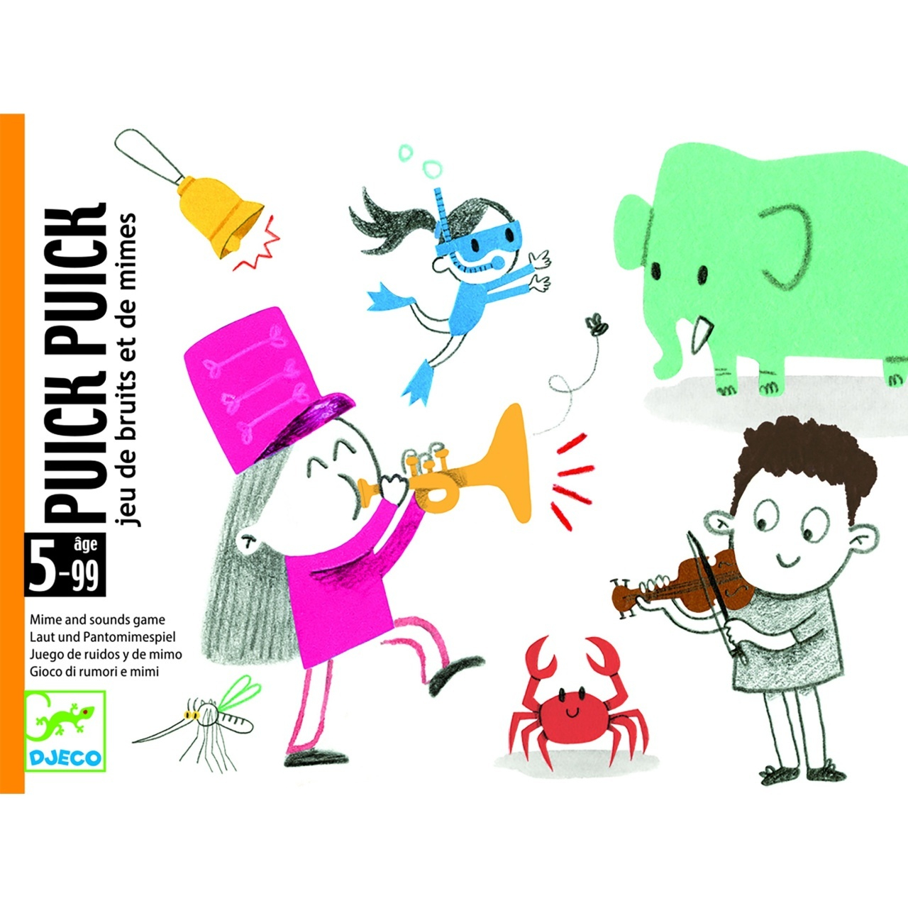 Joc de mimă și sunete pentru copii – 120 de idei amuzante Un joc captivant și ușor de înțeles, pentru copiii mici care încă nu știu să citească! Jucătorii trebuie să ghicească ce este ilustrat pe cartonaș, imitând sunetul sau mimând. Distracția este garantată! Cu 120 de idei ilustrate simpatic, acest joc stimulează imaginația, spontaneitatea și capacitatea de exprimare non-verbală. Pentru 2 până la 4 jucători, acasă sau în deplasare. Design confortabil pentru copiii mici. Cărți de formă mare, ușor de ținut și manevrat. Reguli simple, ușor de înțeles. Cutie compactă, ușor de transportat. Jocul conţine 120 de cartonașe ilustrate + reguli de joc Vârsta recomandată: 5 - 99 ani. Fabricat din carton certificat FSC®. Conform reglementărilor EN71&ASTM. AVERTISMENT: Contraindicat copiilor sub 3 ani. Se recomandă supravegherea copilului de către un adult în timpul jocului. Citiți cu atenție eticheta produsului înainte de a înmâna jocul copilului. Producător: Djeco, Franța Manual Joc de carti Puick Puick, Djeco - descarca aici fisierul