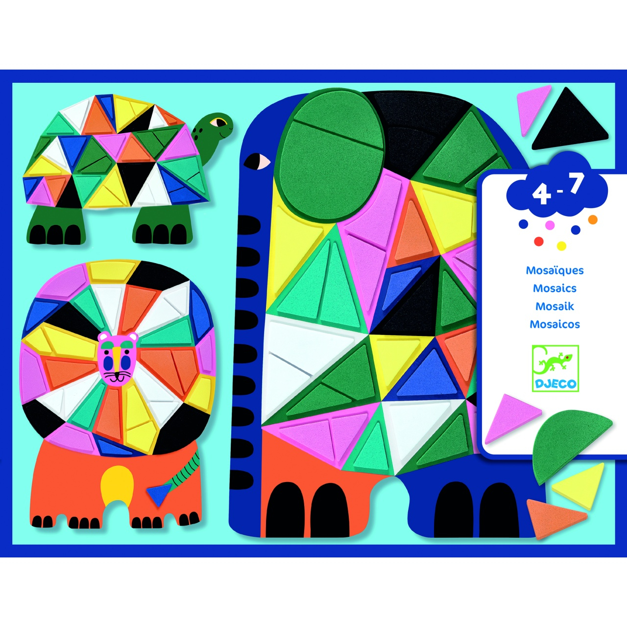 Set creativ Mozaic – Animale sălbatice din savana Descoperă distracția creativă cu acest set de mozaicuri din spumă reutilizabilă , pentru copiii cu vârste între 4 și 7 ani ! Decorează 3 animale sălbatice din savană cu autocolante colorate, groase și ușor de manevrat – potrivite pentru mânuțele mici.